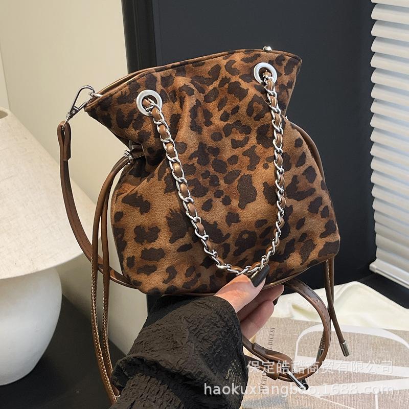 This year's popular bags are women's autumn and winter 2025 new leopard print niche messenger bags, casual portable bucket bags.