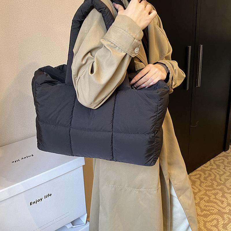 Large capacity cotton clothing bag women's 2025 new trendy underarm shoulder bag casual portable cloud tote bag