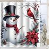 Jul Snögubbe Duschdraperi Vinter Skog Röda Bär Fåglar Snöig Scen Jul Badgardiner Tyg Väggbonad Badrumsdekor