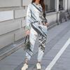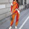 Set för kvinnor 2 delar Rund hals Långärmade tröjor Tryckta mjukisbyxor Fickset