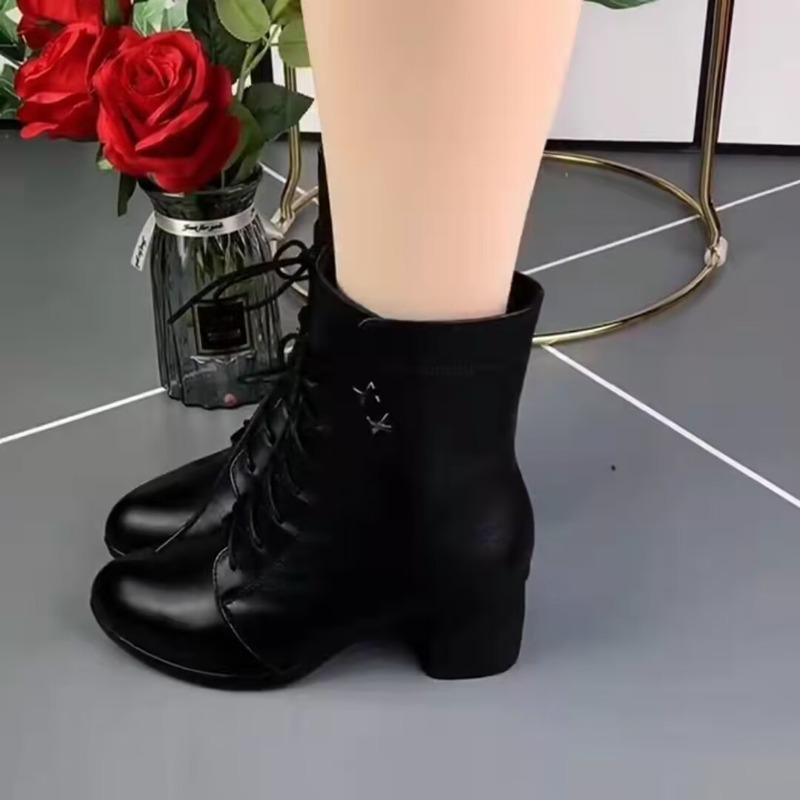 Vinter sammet bekväma vind mode stövlar mjukt läder tjock klack stövlar bekväma nya damstövlar tunna stövlar mamma mode stövlar