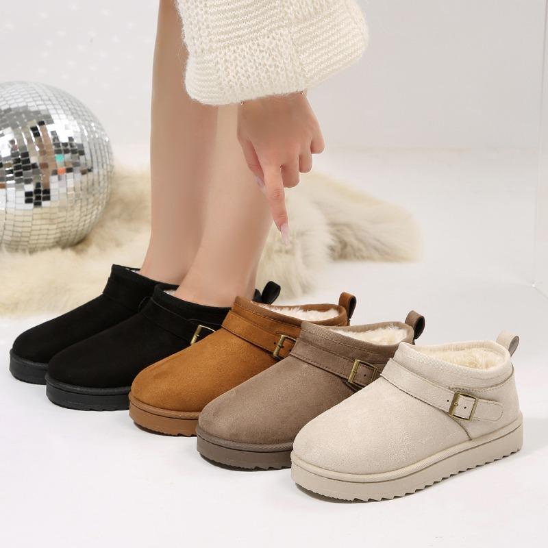 Snökängor med tjock sula, Varma bomullsskor, Halkskyddande ytterkläder, Fleece-korta stövlar