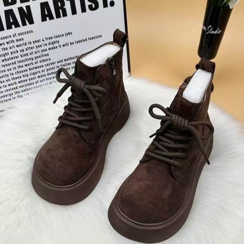 Nya tjocksulade Martin-kängor för damvintern, nya små män, förhöjda och sammet för att hålla värmen, vänd päls och tunna korta stövlar