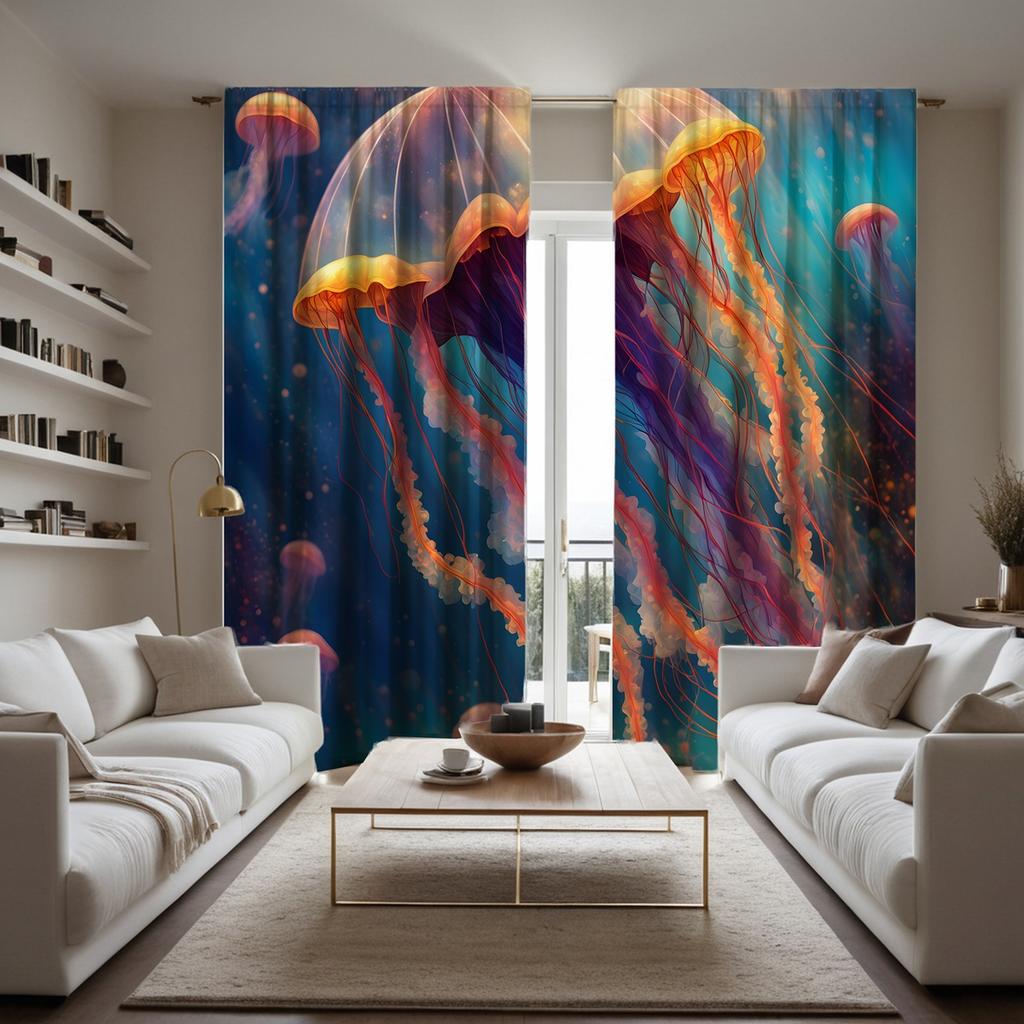 2 st HD Havsbottens Värld självlysande maneter dekorativ gardin Färgsystem digitaltryckt gardin Heminredningsstil Dec