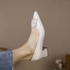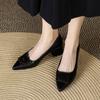 New women's fashion single shoes pointed large size rubber soft sole casual solid color medium heel square heel small leather shoes women
