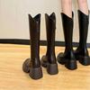 Platåkängor med tjock sula 2025 nya höga stövlar tjock klack men vidgade för knäfeta mm bakre dragkedja ridstövlar