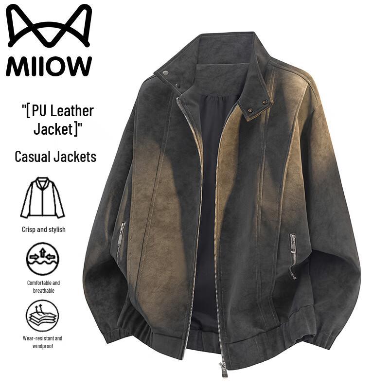 Maoren Men's American Retro Stand-Collar PU Leather Jacket