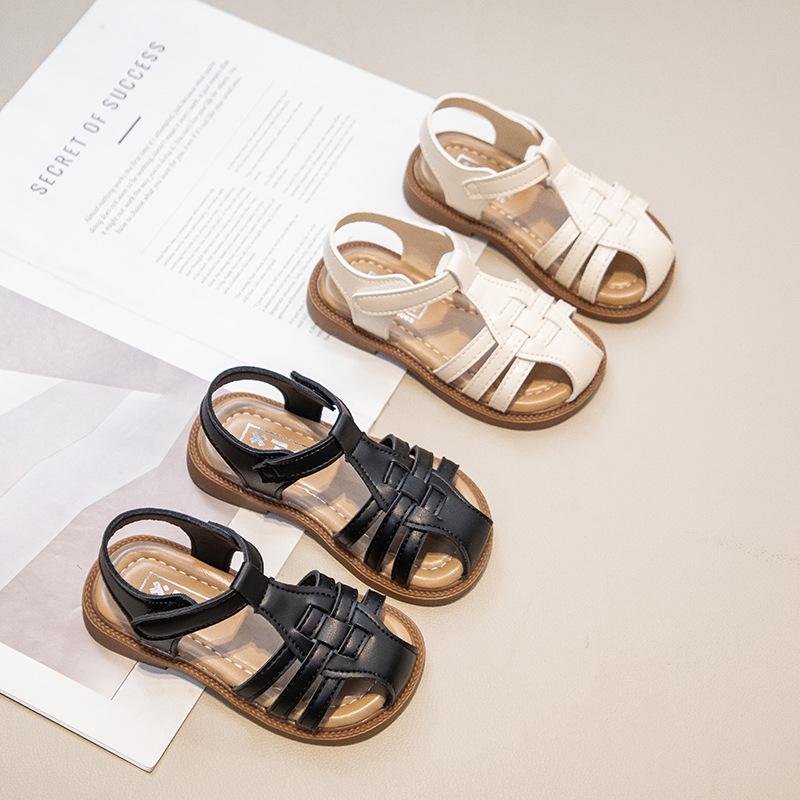 Flickors flätade sandaler 2025 sommar nya babyflickors romerska sandaler mjukbottnade prinsesskor barns strandskor trend