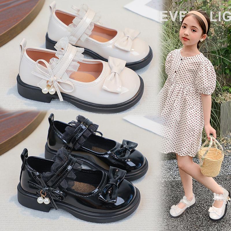 Girls leather shoes sweet bow princess shoes 2025 new children's black single shoes British style soft sole performance shoes
