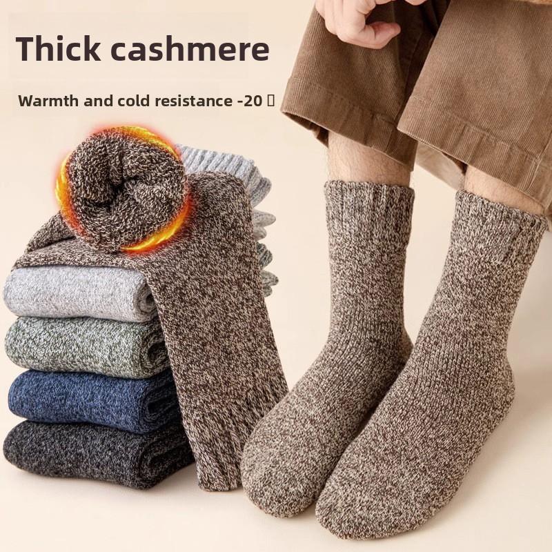 Vintertjocka mellankalvssockor för män, fleeceförtjockade varma ögonsockor, randiga kashmirstrumpor, enfärgade frottésockor