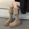 Två bär vikta stövlar med tjock sula för barn, nya knähöga ridstövlar med tjock klack höst och vinter 2025, vår och höst