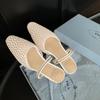 Elegant ord med väskhuvud coola tofflor för utomhusbruk sommarsäsongens nya en-pedal mjuk sula ihåligt temperament andningsbara damsandaler