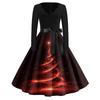 Dammode V-ringad Ledig passform Julmönstrad Långärmad Klänning