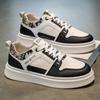 Höst Herr Vita Läder Casual Sportskor - Andningsbara Student Skate Sneakers Trendig Pappa Stil