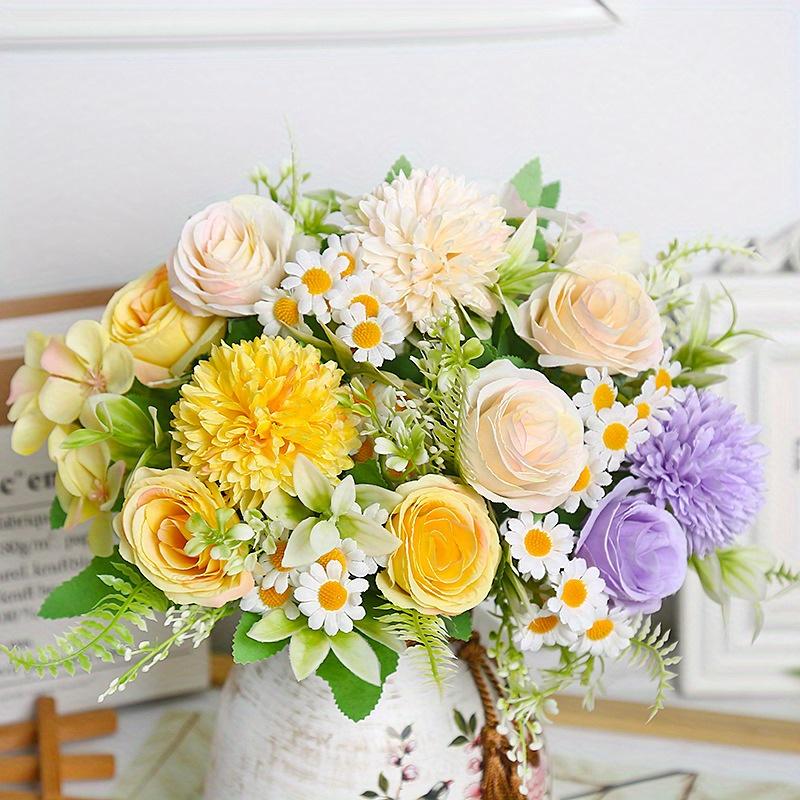 1pc Multicolor Plastic Simulation Daisy Rose Bouquet, Suitable for Wedding Party Decoration