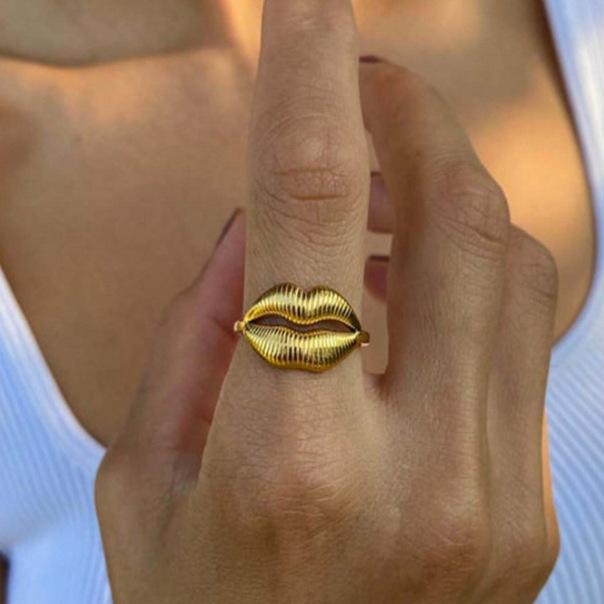 Retro stainless steel lip ring women's niche light luxury non-fading open ring new