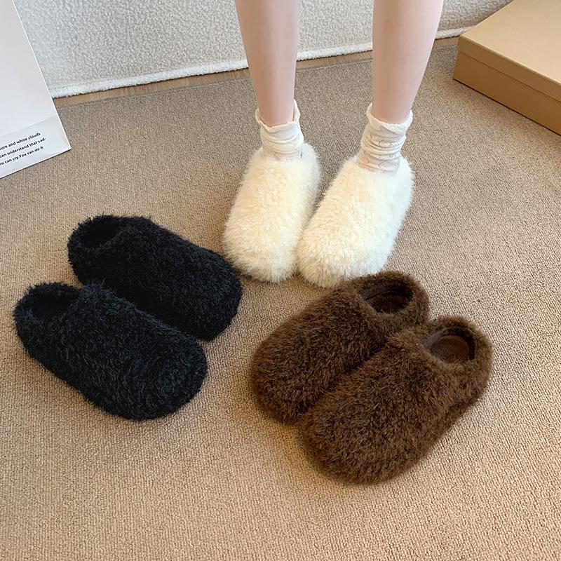 Women's Fuzzy Thick-Soled Closed-Toe Slippers - Warm, Fashionable, and Cute for Indoor/Outdoor Wear