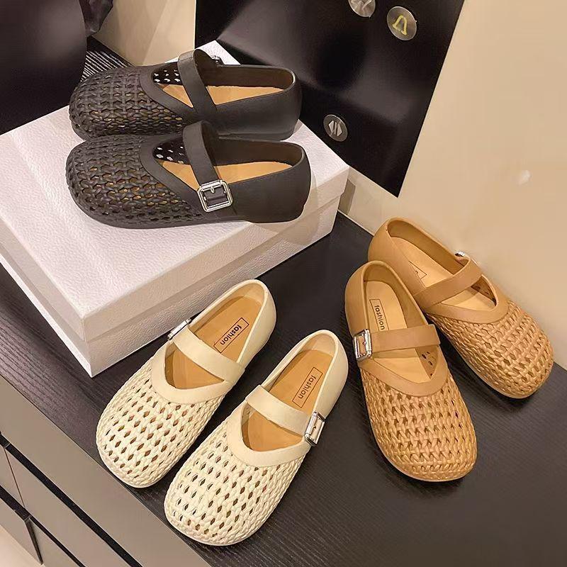 Damsandaler för sommaren, med öppen tå, för fritid - Enfärgade, ihåligt mönster, spännrem