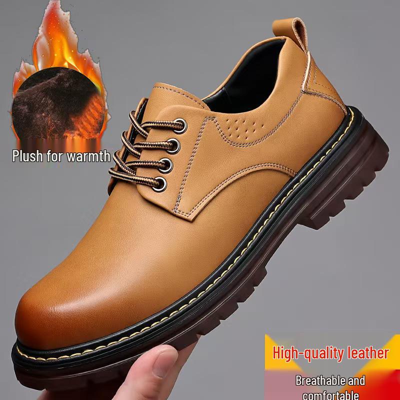 Men's Leather Thick-Soled Casual Derby Shoes for Spring/Autumn - Formal Black Low-Top Martin Boots