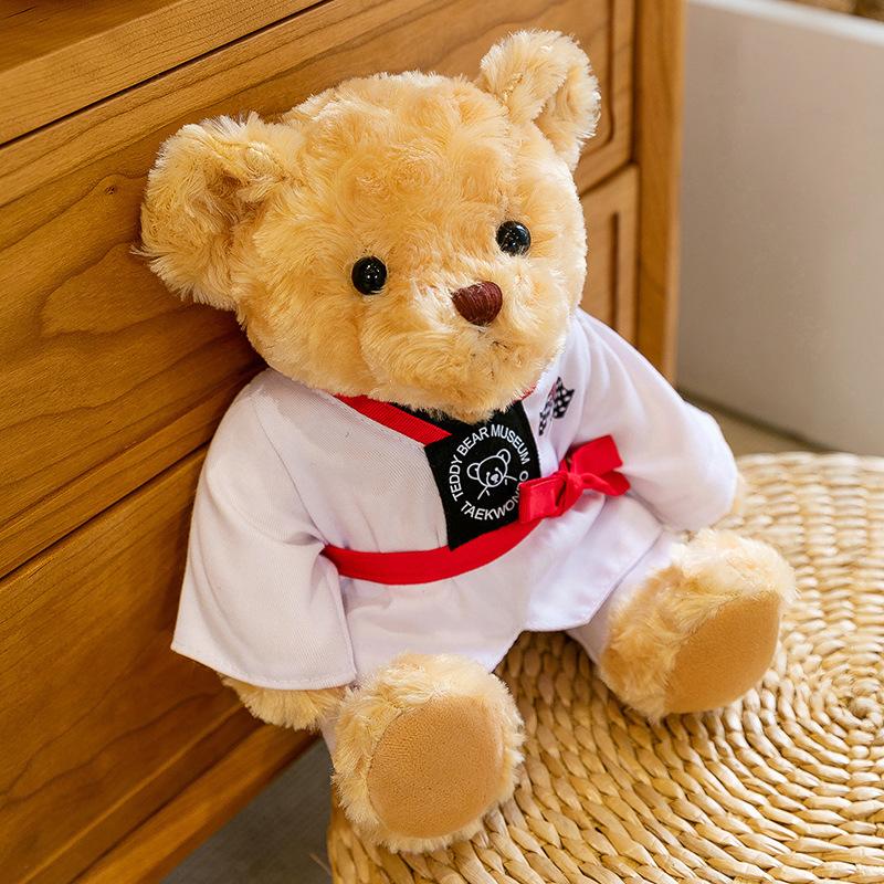 Taekwondo björn plyschleksak nallebjörn docka kreativ utklädningsdocka gripmaskin gåva