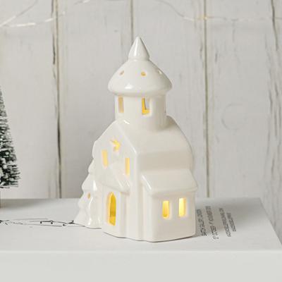 Keramiskt Snöhus LED Dekor Nordisk Julby Bordslampa Kreativ Festlig Mittpunkt för Spiselhylla Och Hyllutställning