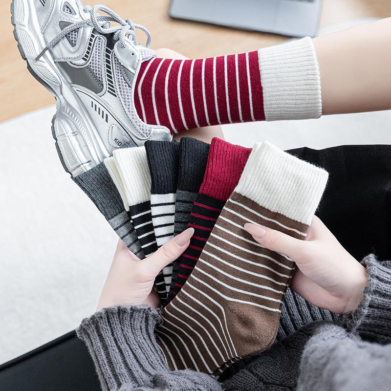 Red Socks, Women's Pile Socks, Autumn and Winter Trendy Long Socks, Retro Striped College Style Thigh-high Socks