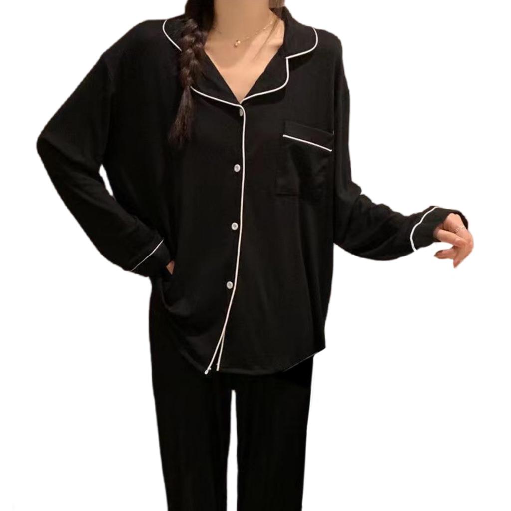 [Various Designs and Styles] Women's long-sleeved pajamas come in a variety of design styles to meet the aesthetic needs of different women. From classic solid colors to fashionable prints, each offers a unique personality. Choosing long-sleeved pajamas with a V-neck and open buttons makes them easy to put on and take off, showcasing a variety of styles. Whether you're looking for an elegant home setting or a casual weekend getaway, wearing long-sleeved pajamas will help you feel at ease and show off your unique charm. Choose from stylish and versatile ruffled black, simple and classic black, refreshing white, soft apricot, or youthful and beautiful blue!