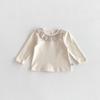 This charming top is perfect for adding a touch of elegance to your little one's wardrobe. It features a delicate floral lace Peter Pan collar, offering a timeless Korean style. The long sleeves provide warmth and comfort, making it ideal for any season. Made from a soft cotton blend material, this top ensures both breathability and durability, perfect for everyday wear and special occasions alike.