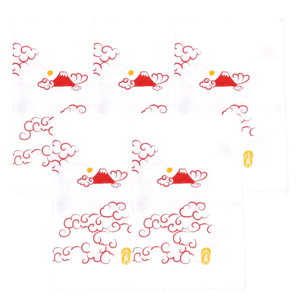 Klustergas Tenugui Handtvättad Slät Yta Svett Baby Baby Molnhavet och Fuji Madder 34 x 88 Set om 5 Japantillverkad (Tenugui-handdukar),