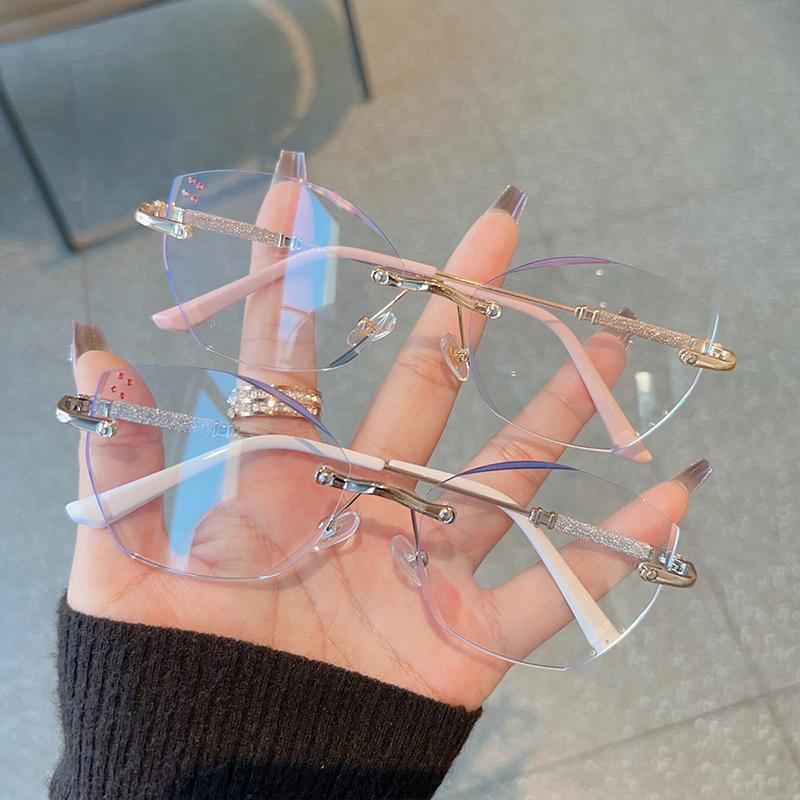 Anti-blue Light Glasses Cat Eye Metal Eyewear Women Rimless Luxury Eyeglasses Blue Light Blocking Man Lady Computer Eyeglas