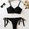 Europeisk och amerikansk fransk satintriangel-bh och trosa-set - Sexigt, trådlöst, bekvämt