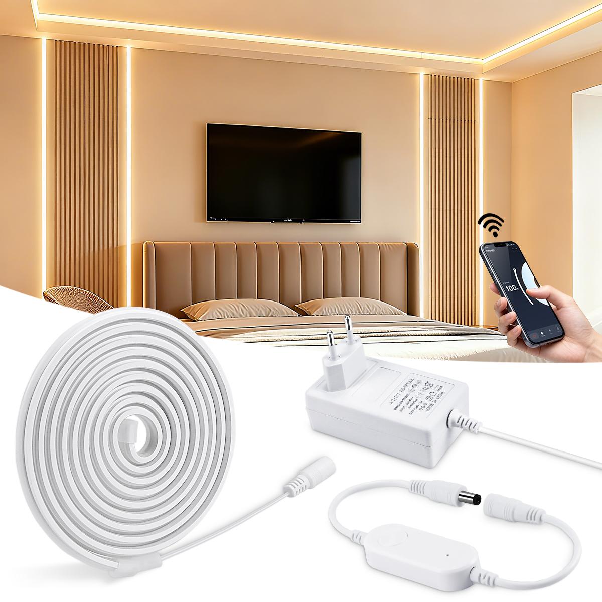 【Fjärrkontroll】 Även om du inte är hemma kan du styra din smarta LED-remsa på/av med din telefon via Tuya eller Smart Life App. Ställ enkelt in ett schema för din smarta led-remsa. Anpassa ditt hembelysningssystem, som att ställa in lamporna så att de tänds i skymningen eller släcks vid soluppgången. Du kan skapa en grupp för alla dina smarta LED-remsor och styra dem alla med bara ett kommando. Fungerar med 2,4 GHz Wi-Fi-nätverk.