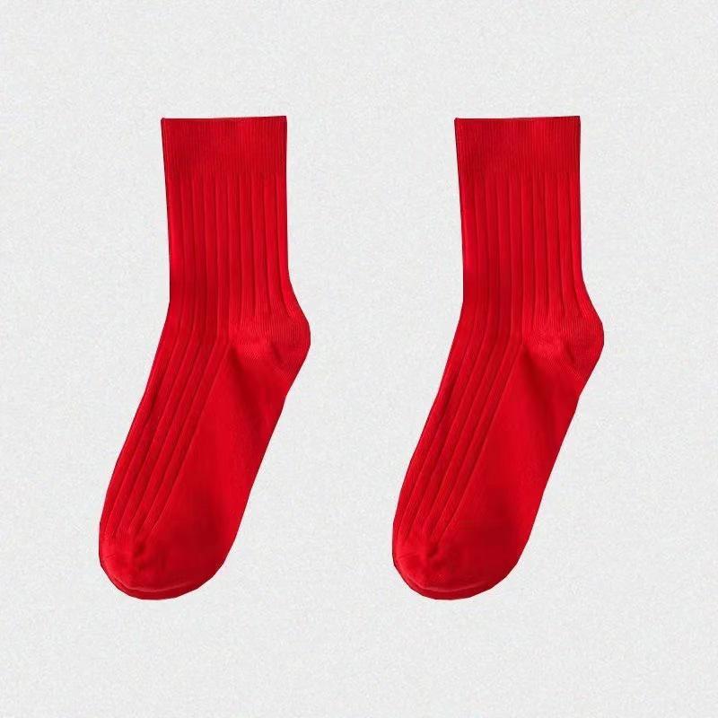 Solida Röda Mellanvadsstrumpor Benming År Bröllopsstrumpor för Män & Kvinnor - Deodorant Bomull Parstrumpor.