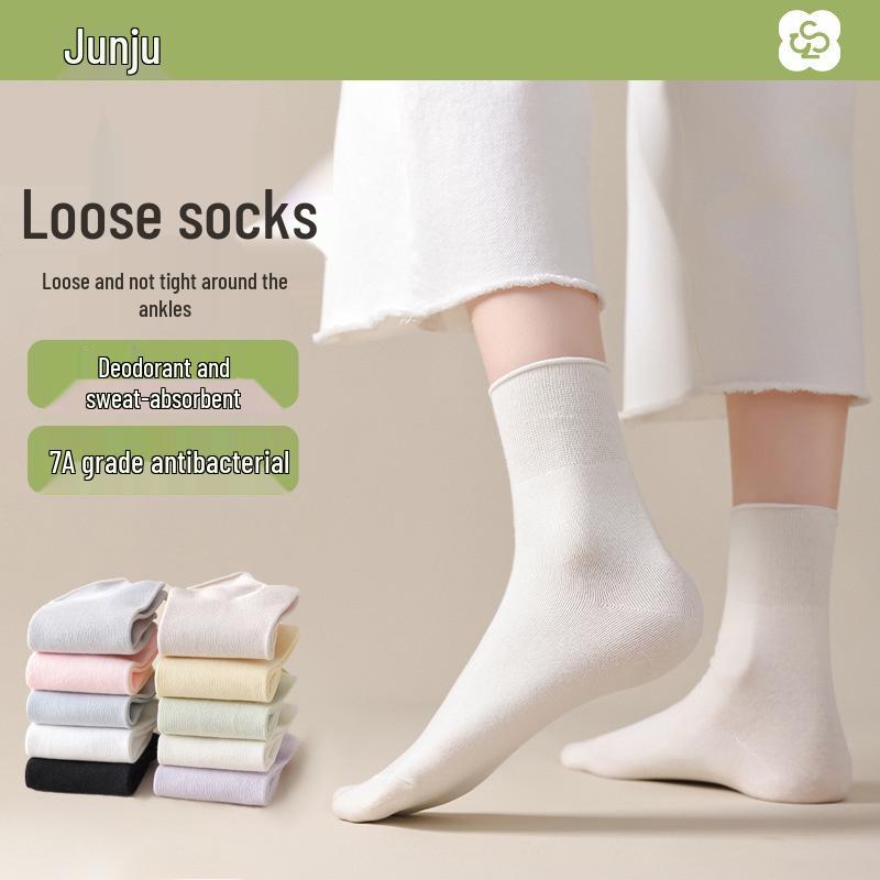 Zhuji Women's Antibacterial Mid-Calf Summer Socks - Breathable, Non-Binding, Early Autumn Style