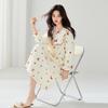 Upplev tidlös komfort med vår koreanska stil dammorgonrock för gravida, tillverkad av 100% ren bomull för en mjuk och andningsbar känsla. Denna nattlinne med lång ärm erbjuder en lös passform, perfekt för att hålla sig mysig under hösten, vintern och våren.. Dess antibakteriella egenskaper säkerställer extra fräschör och komfort, vilket gör den till ett idealiskt val för blivande mödrar.