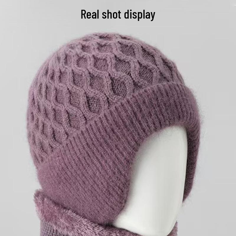 Women's Winter Wool Knit Hat with Ear Protection for Elderly