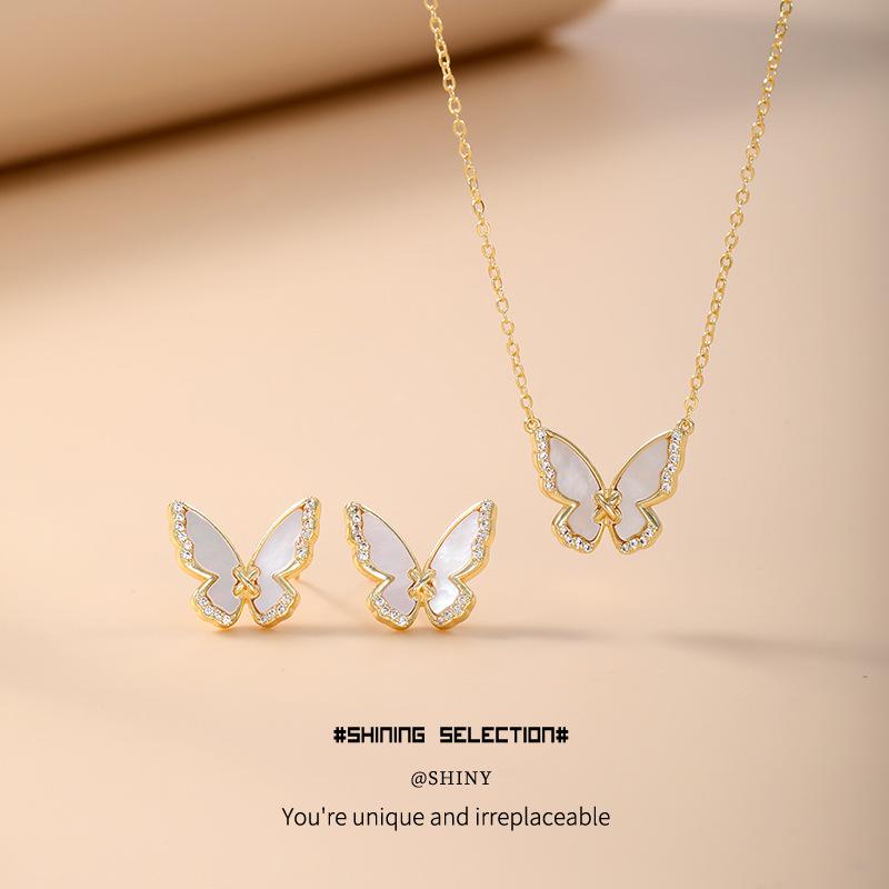 2025 High-End Butterfly Shell Earrings & Necklace Set - Elegant Luxury Clavicle Chain for Women