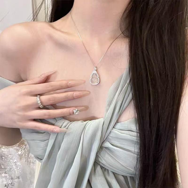 Women's Retro Light Luxury Chalcedony Gourd Pendant Necklace - New Chinese Style for Girlfriend