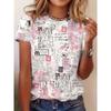 Summer retro letter 3D printed T-shirt women's short sleeved casual round neck T-shirt top Harajuku street T-shirt women's clothing