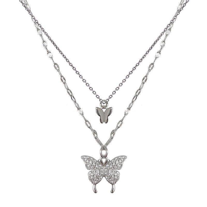 Trendy Double-Layer Butterfly Necklace - Titanium Steel Clavicle Chain for Women