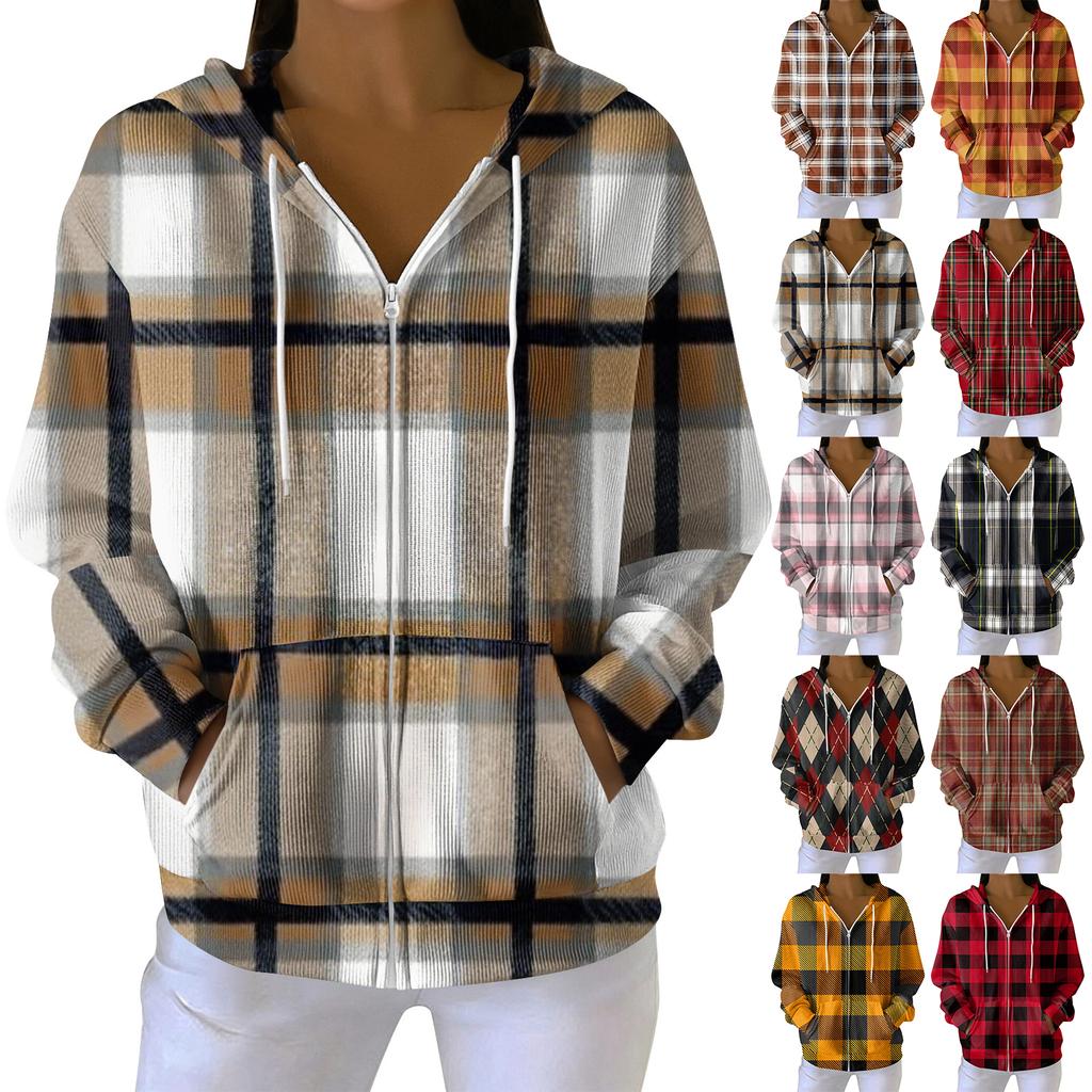 Dam Casual Mode Långärmad Dragkedja Jultryck Stickad Hoodie