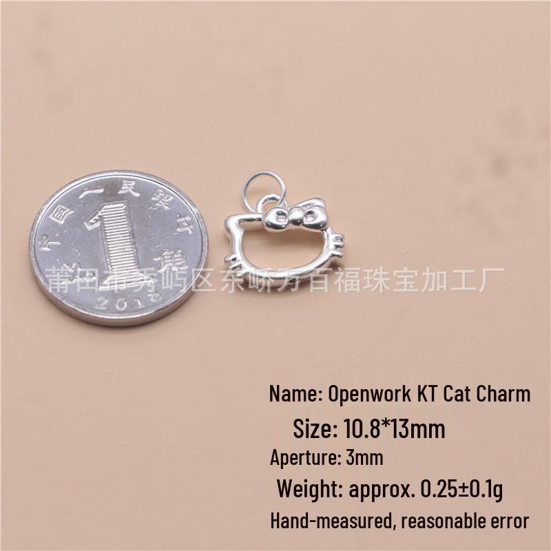 Sterling Silver Hollow Cat Pendant for DIY Jewelry Making - Bracelet & Necklace Accessories