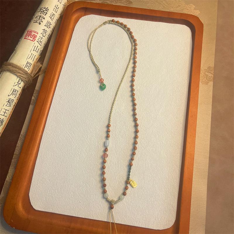 Hand-Woven Olive Pit & Dzi Bead Necklace with Adjustable Ethnic-Style Pendant Lanyard