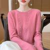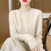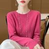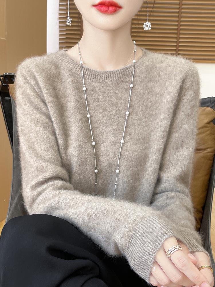 Omfamna mysig elegans med denna stickade damtröja i slim-fit, tillverkad av 100% ull. Denna tröja har en smickrande rund halsringning och långa ärmar och kombinerar perfekt stil och komfort, vilket gör den till ett oumbärligt tillskott till din höst- och vintergarderob.. Det högkvalitativa ullmaterialet säkerställer värme och mjukhet, medan den tidlösa designen kompletterar en mängd olika outfits för alla tillfällen.