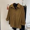 Dammode Höst Retro Kaffe Manchesterrandig Krage Långärmad Lager-på-lager Skjorta
