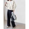 Dam 2025 Retro Raglan Rundhals Sweatshirt - Petite Vår/Höst Vardaglig Kort Pullovertopp