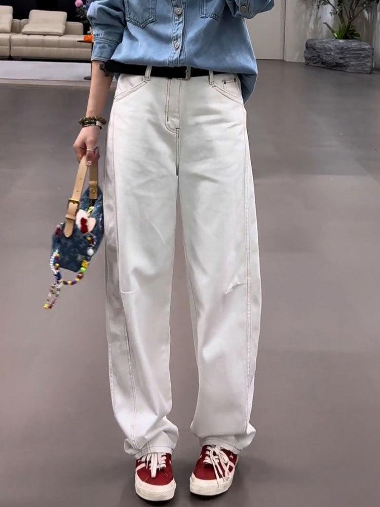 Vita Damslimmande Högmidjade Jeans med Vida Ben - Europeisk Stil, Vår/Höst 2025