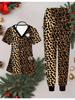 3D Leopard Print Printed Women's Nurse Uniform Set Short Sleeve Long Pants with Pocket Casual Fashionable Christmas Gift