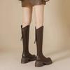 Tunna Stövlar Dam Höst och Vinter Utomhuskläder Mocka Smala Tjocka Tjocksulade Enkel Design Trend med Riddarstövlar