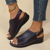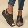 Plus Size 43 Platform Wedge Open Toe Sandals Women's 2025 New Rear Velcro Roman Fish Mouth Sandals